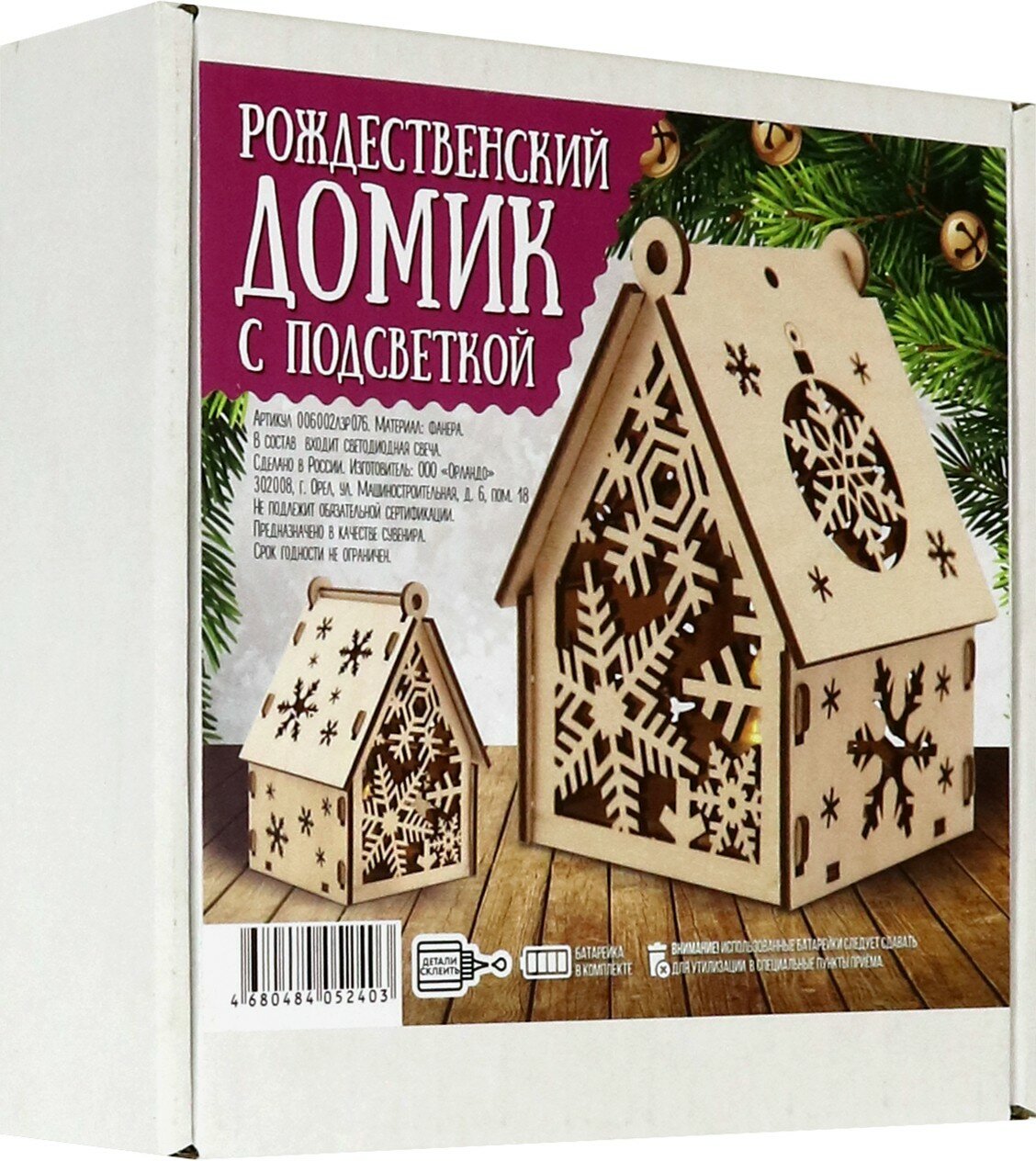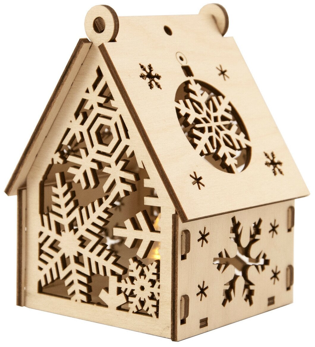 Домик понравился, все детали имеют разный рисунок снежинок. Внутрь вставляется светодиодная свеча, которая в темноте создаёт мерцание настоящей свечи. Собирать надо аккуратно, нечаянно отломали верхнее крепление, но удачно склеили. В высоту домик 13 см, в ширину 8 см, в глубину 8 см. Имеет крепление для того, чтобы повесить на ёлку. Одна сторона крыши поднимается. Можно подарить такой сувенир на новый год. Ребёнку очень понравился.