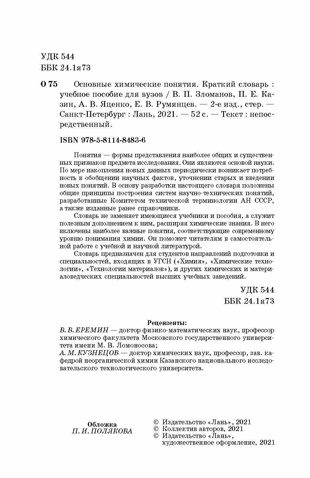 Основные химические понятия. Краткий словарь. Учебное пособие для вузов (Зломанов Владимир Павлович, Казин Павел Евгеньевич, Яценко Александр Васильевич); Лань, 2021