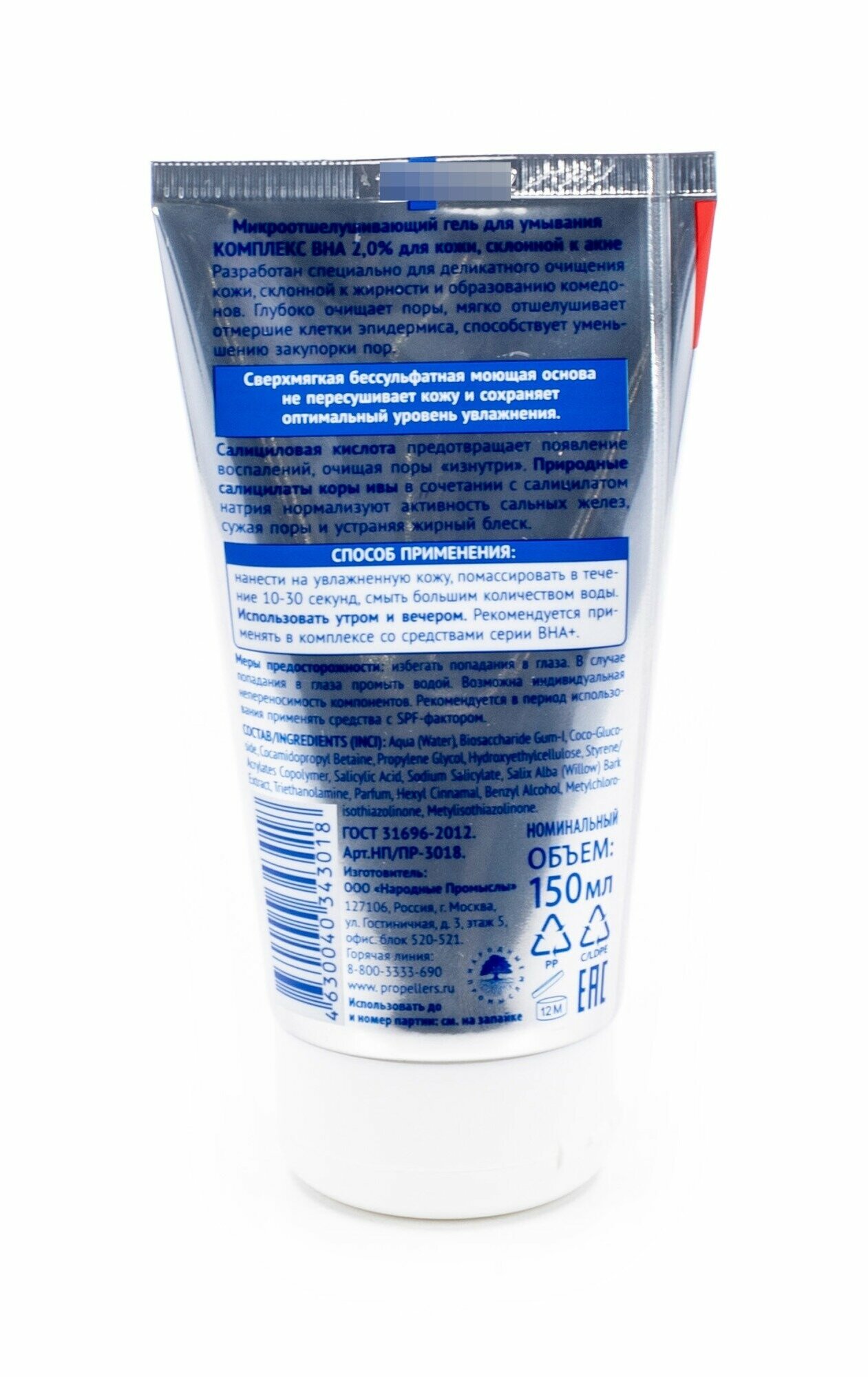 Гель для умывания микроотшелушивающий комплекс ВНА 20% для кожи склонной к акне Пропеллер 150мл Народные Промыслы ООО (573297)