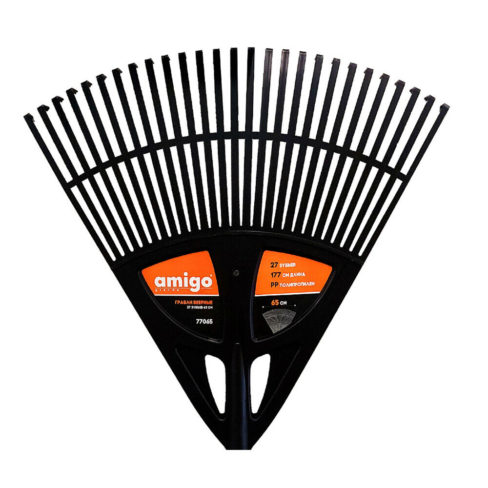 **Грабли веерные Amigo** предназначены для уборки территории от опавшей листвы, сухой травы, мелкого мусора. Изготовлены из полипропилена, поэтому не ржавеют под воздействием влаги, отличаются небольшим весом.