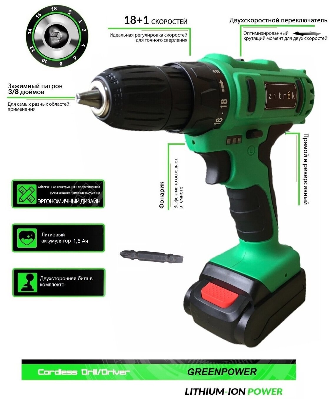 Аккумуляторная дрель-шуруповерт Zitrek »