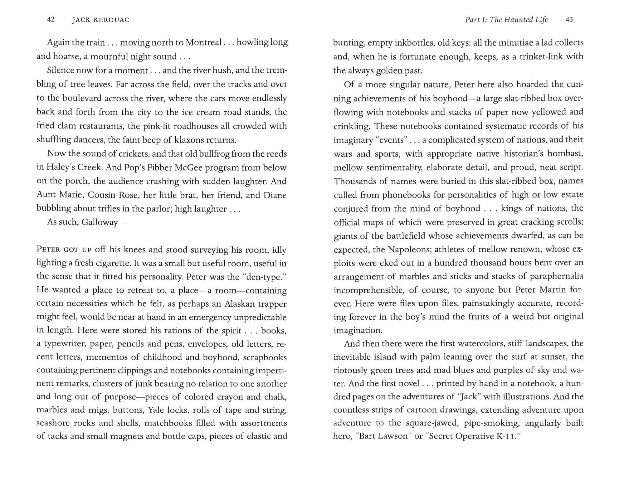 The Haunted Life is the coming-of-age story of Peter Martin, a college track star determined to idle away what he knows will be one of his last innocent summers in his tranquil New England home town. But with the war escalating in Europe and his two closest friends both plotting their escapes, he realizes how sheltered his upbringing has been. As he surveys the competing influences of his youth, he struggles to determine what might lead to an intellectually authentic life. The Haunted Life is ultimately a meditation on intellectual truth, male friendship and the desire for movement - all themes that would dominate Kerouac's later work.