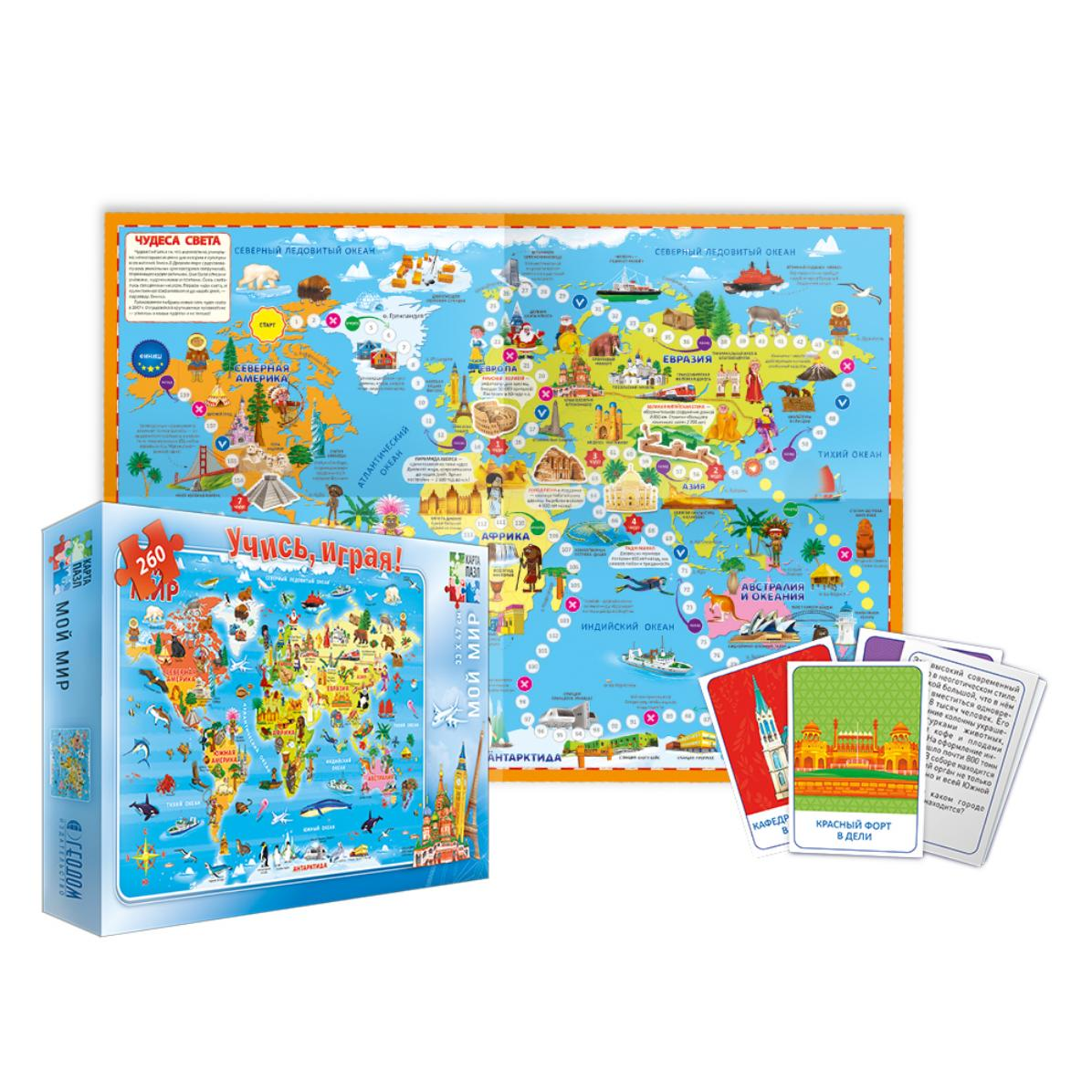 Содержание игровых карточек дает возможность узнать и усвоить самое интересное о разных уголках нашей замечательной планеты: о народах и традициях, о грандиозных сооружениях и уникальной природе.