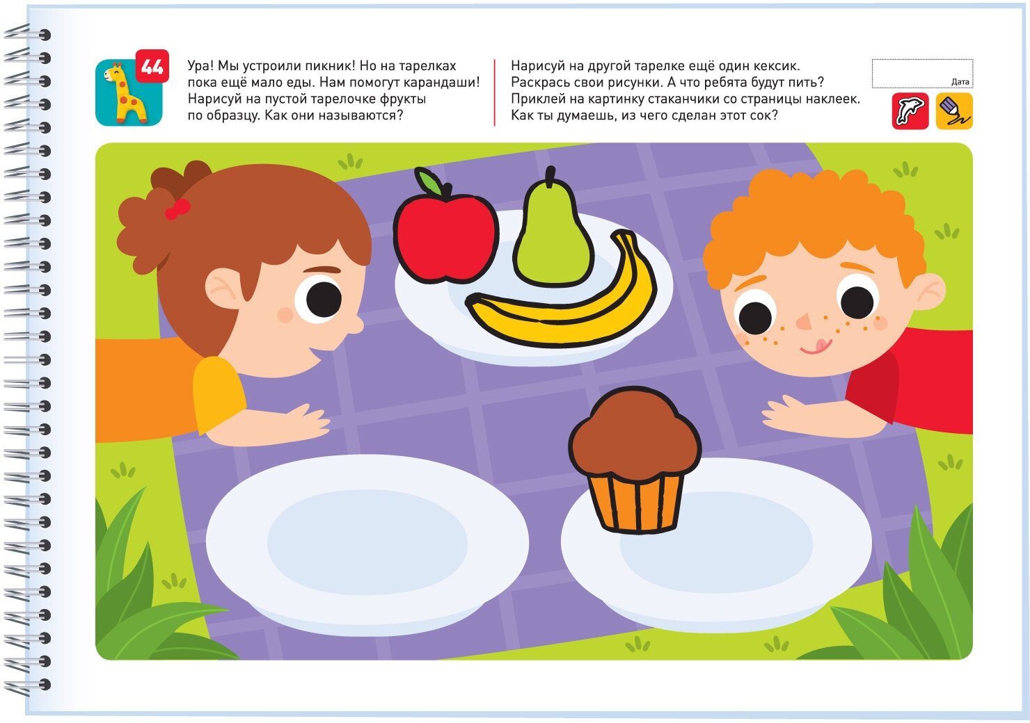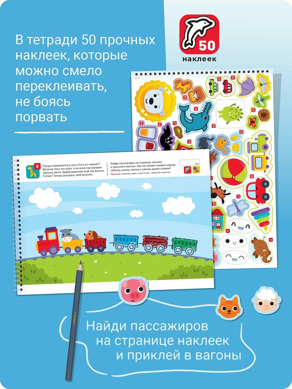 Наклейки не только любимы всеми детьми, но и помогают развивать мелкую моторику. В тетради 50 прочных наклеек, которые можно смело переклеивать, не боясь порвать.