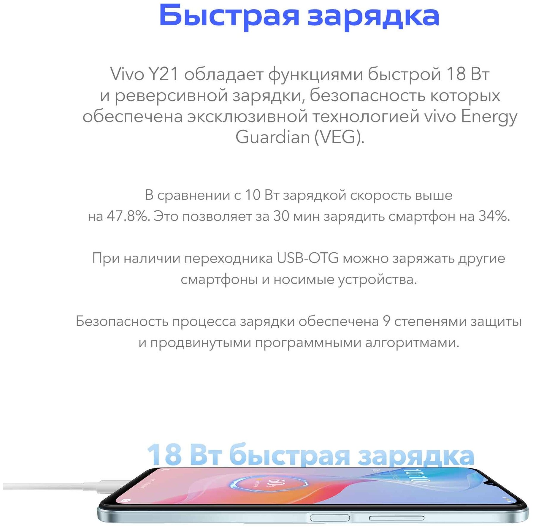 Смартфон vivo Y21 4/64 ГБ Dual nano SIM Бриллиантовое сияние Y21 Бриллиантовое сияние (V2111)