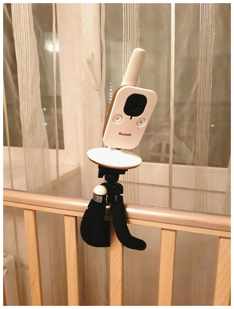 При установке камеры видеоняни на коляске, кроватке или других предметах, используя это крепление, обязательно убедитесь, что ребенок не сможет дотянуться до камеры и кабеля питания. Располагайте устройства на расстоянии от 1.5 метров от ребенка. Соблюдение этого правила важно даже в том случае, если ребенок еще не способен сидеть или ходить. Не соблюдение этого правила может стать причиной несчастного случая.