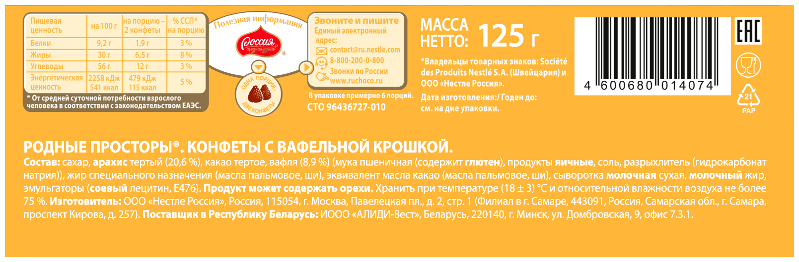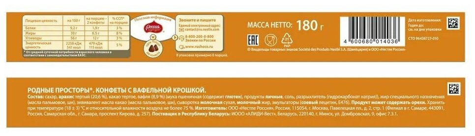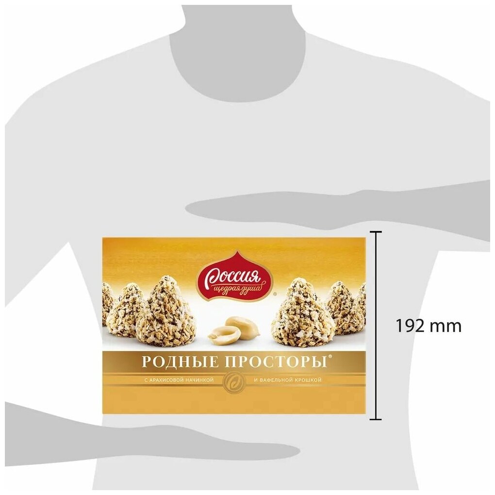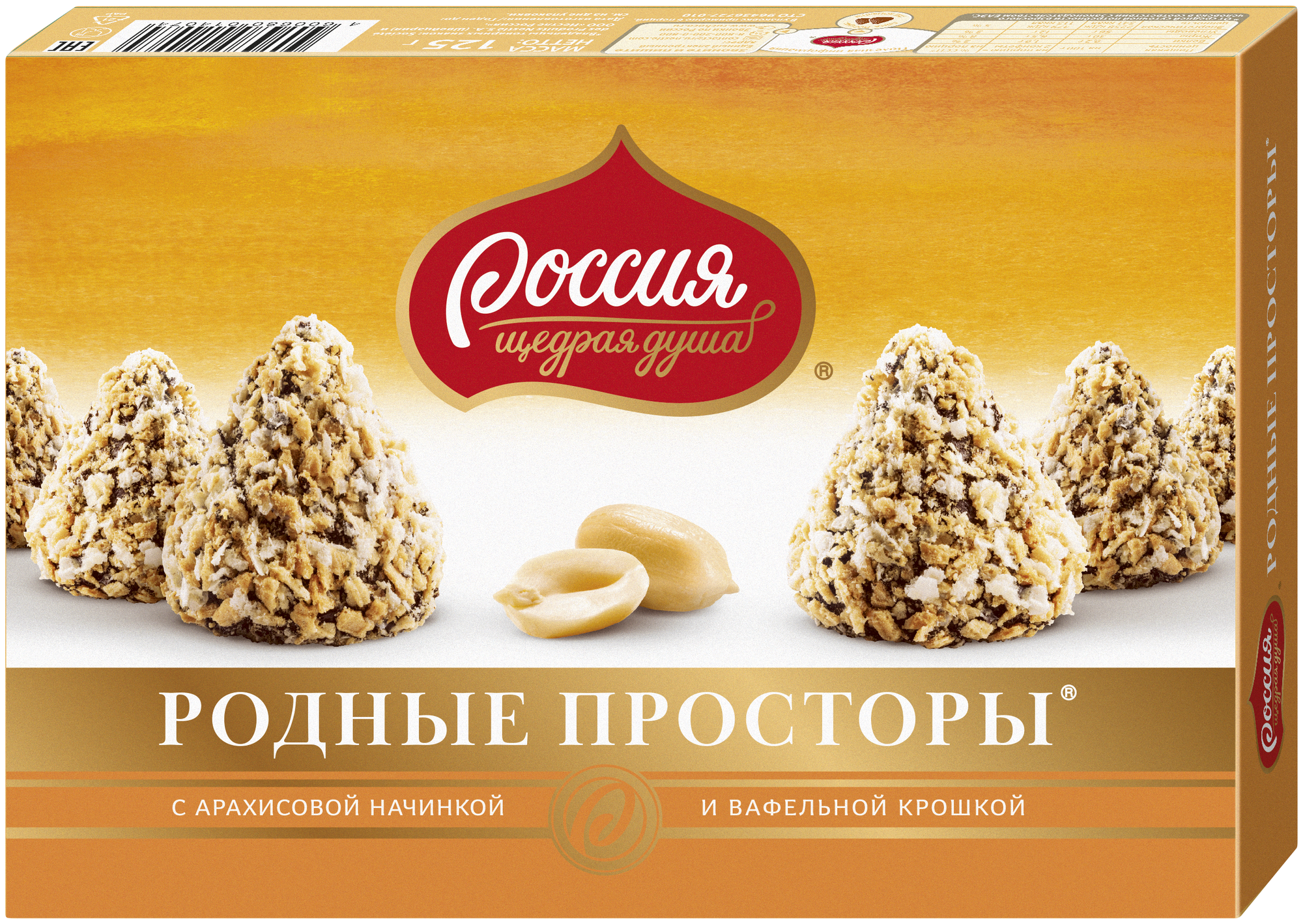 Конфеты Россия "Родные просторы" с начинкой с арахисом и вафельной крошкой 125гр (12484110)