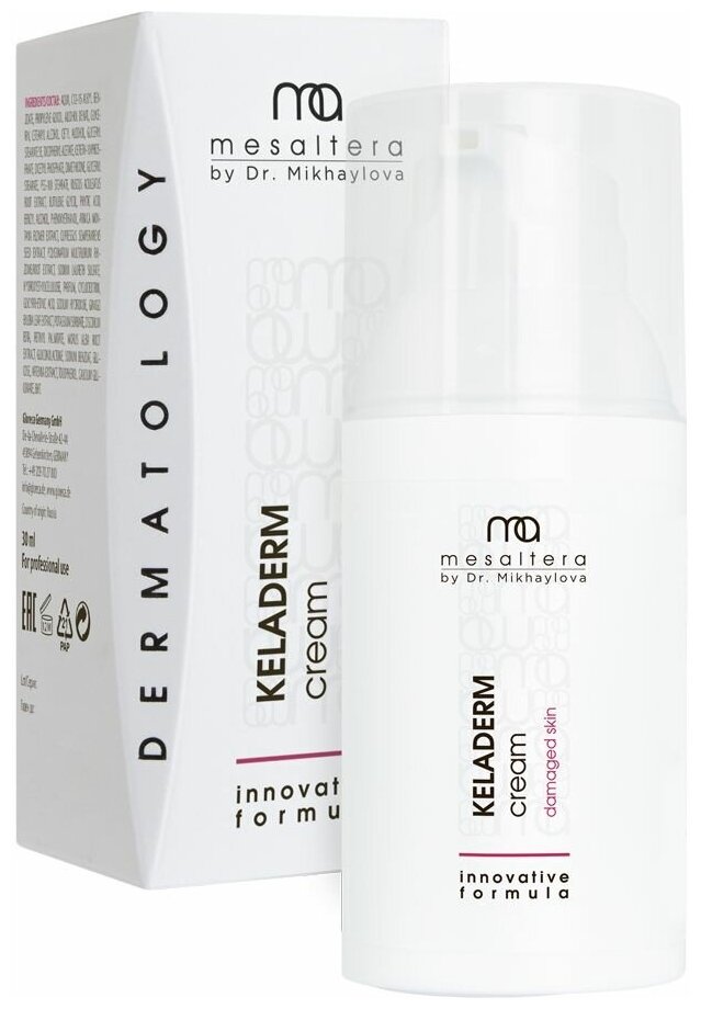 Способствует быстрой и комфортной регенерации. Более того, крем эффективно устраняет отеки и темные круги под глазами, одновременно разглаживая морщины и придавая упругость коже. Келадерм обладает мощным антиоксидантным действием. Защищает кожу от свободных радикалов, препятствует фотостарению.
