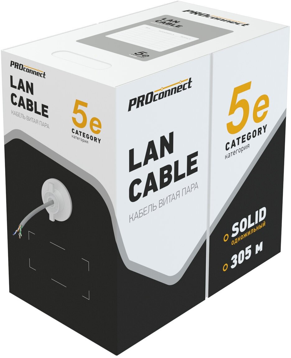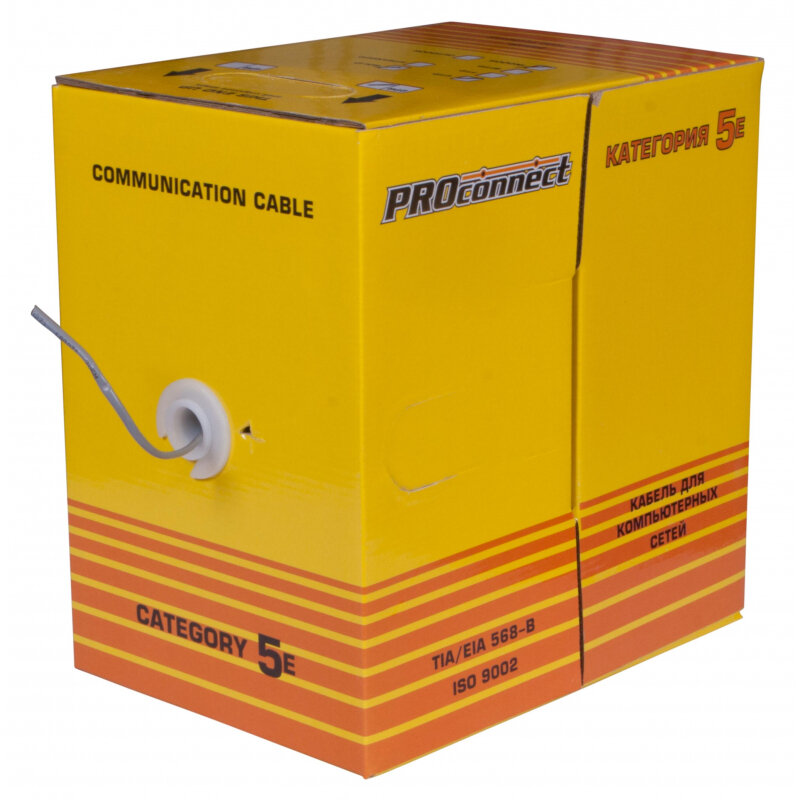 Кабель для компьютера Proconnect UTP 2PR 24AWG, CAT5e, бухта 305 м, 01-0027 (серый)