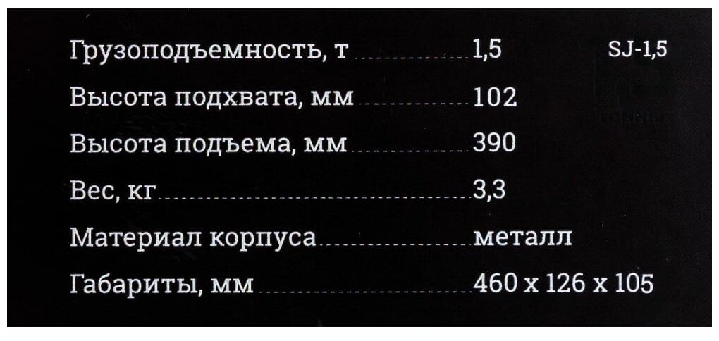 | Комплектация | домкрат - 1 шт; инструкция по эксплуатации |