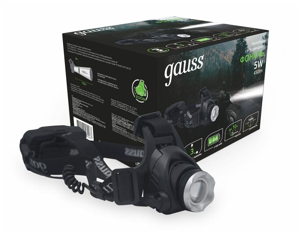Налобный фонарь Gauss Фонарь LED налобный GFL407 5W 450lm Li-ion 2400mAh