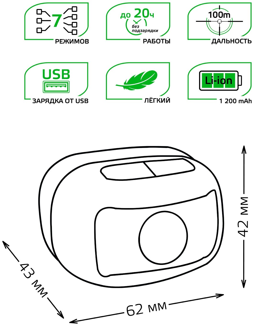| Комплектация | Фонарь, головной ремень, паспорт изделия, шнур USB 0.5м |