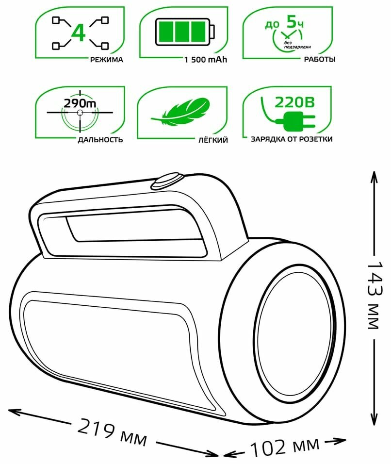 | Тип фонарика | Прожекторный |