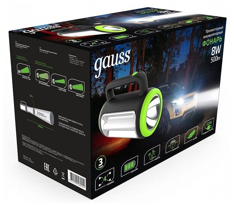 Прожекторный фонарь Gauss модель GFL603 8W 400lm lead acid 1500mAh диммируемый LED 1/10/20 GF603 хорошо подойдет для использования на даче, для альпинизма, поисково-спасательных работ, а также для кемпинга или активного отдыха за городом.