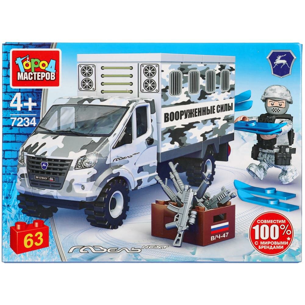 Конструктор Город мастеров Группа газ газель военная (63 детали)