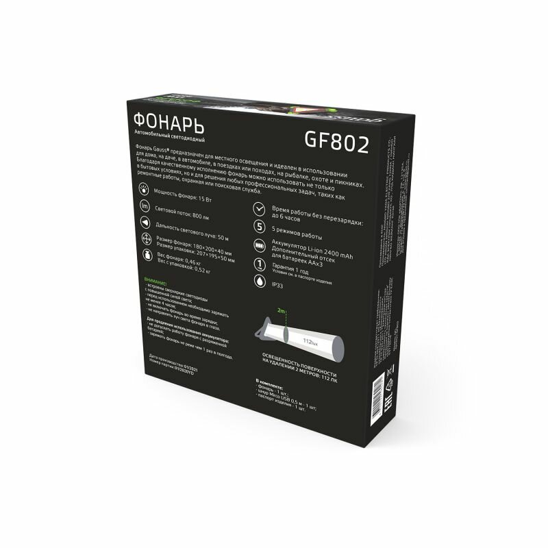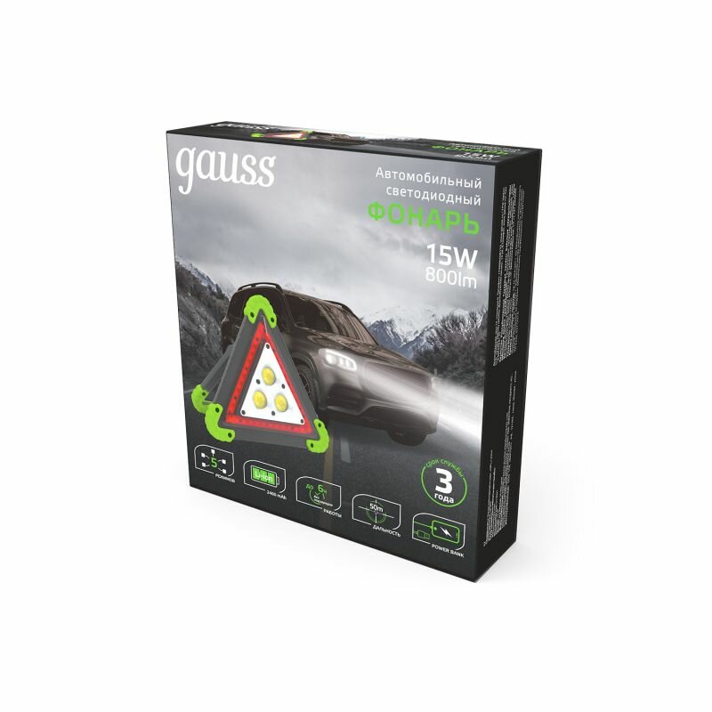Фонарь автомобильный Gauss GFL802 15W 800Lm Li-ion 2400mAh LED Фонарь LED автомобильный диммируемый GFL802 15W 800Lm Li-ion 2400 mAh