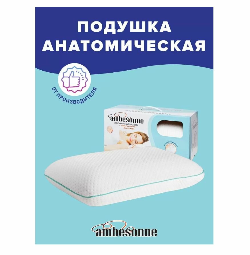 Анатомическая подушка AMBESONNE Анатомическая подушка с эффектом памяти Memory Foam 60х40 (размер: 40х60х13)