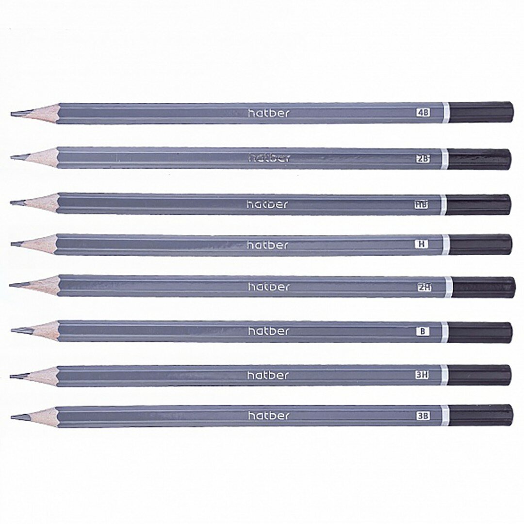 Карандаши чернографитные 8 штук. 3H 2H H HB B 2B 3B 4B Хатбер