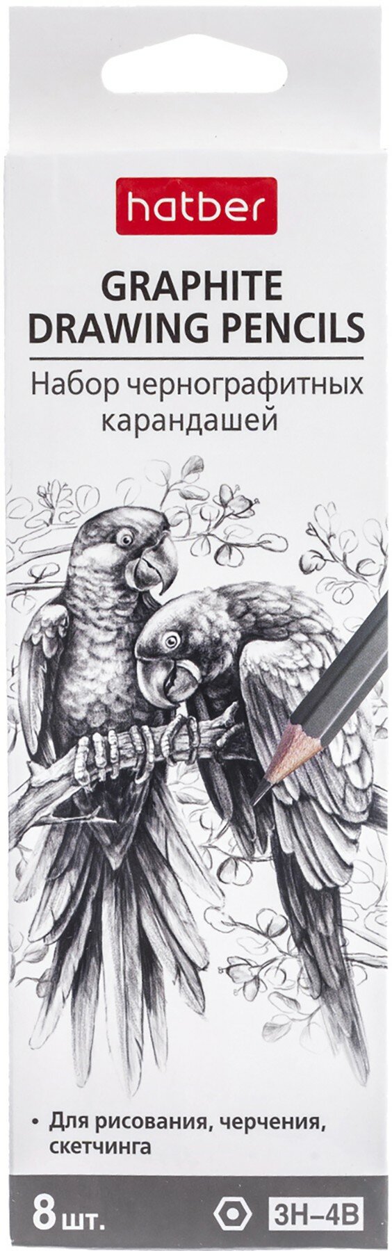 Набор чернографитных карандашей включает в себя 8 чернографитных карандаша разной твердости (3H 2H H HB B 2B 3B 4B).