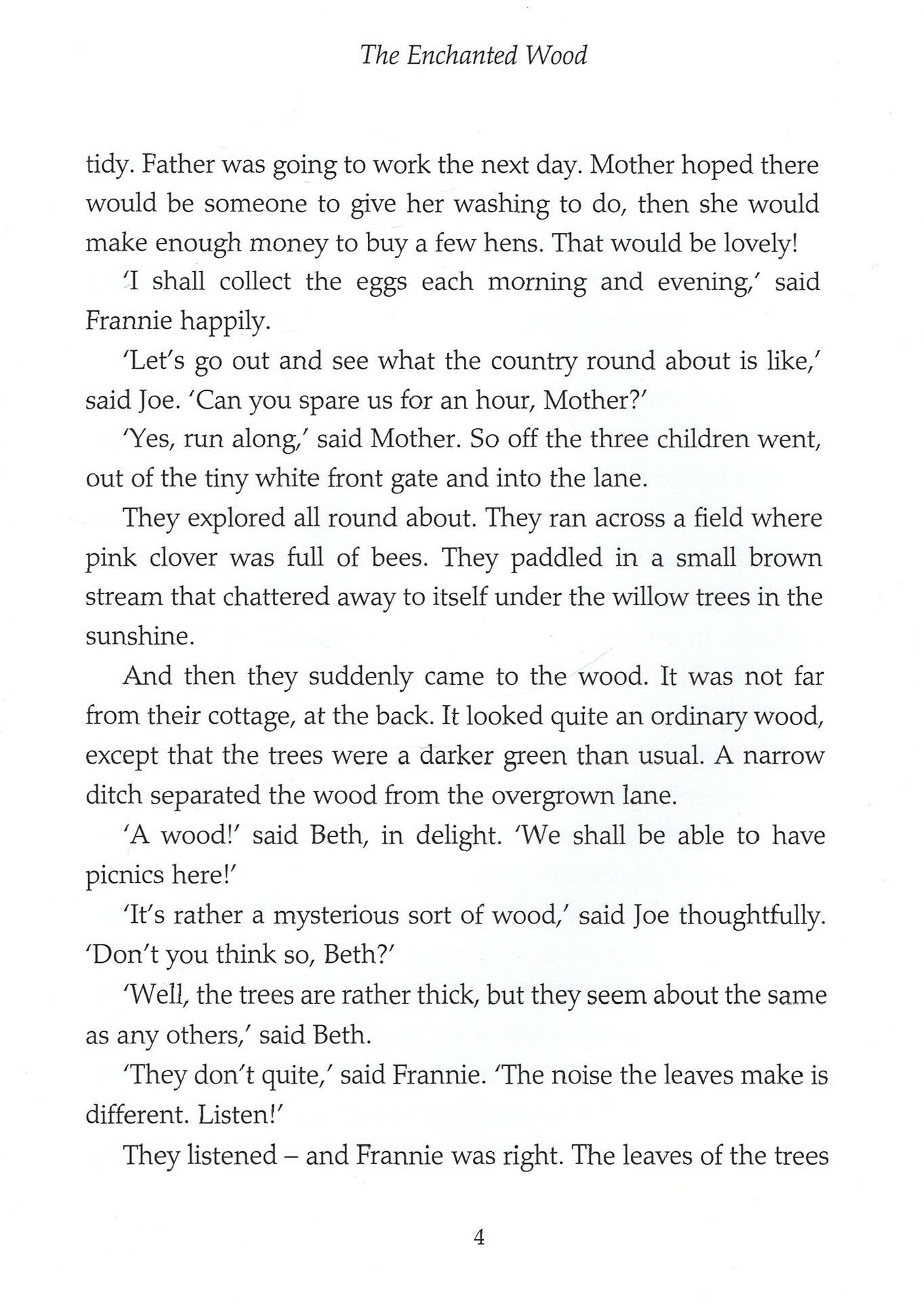 Joe, Beth and Frannie find the Enchanted Wood on the doorstep of their new home, and when they discover the Faraway Tree it is the start of a wonderful series of magical adventures.