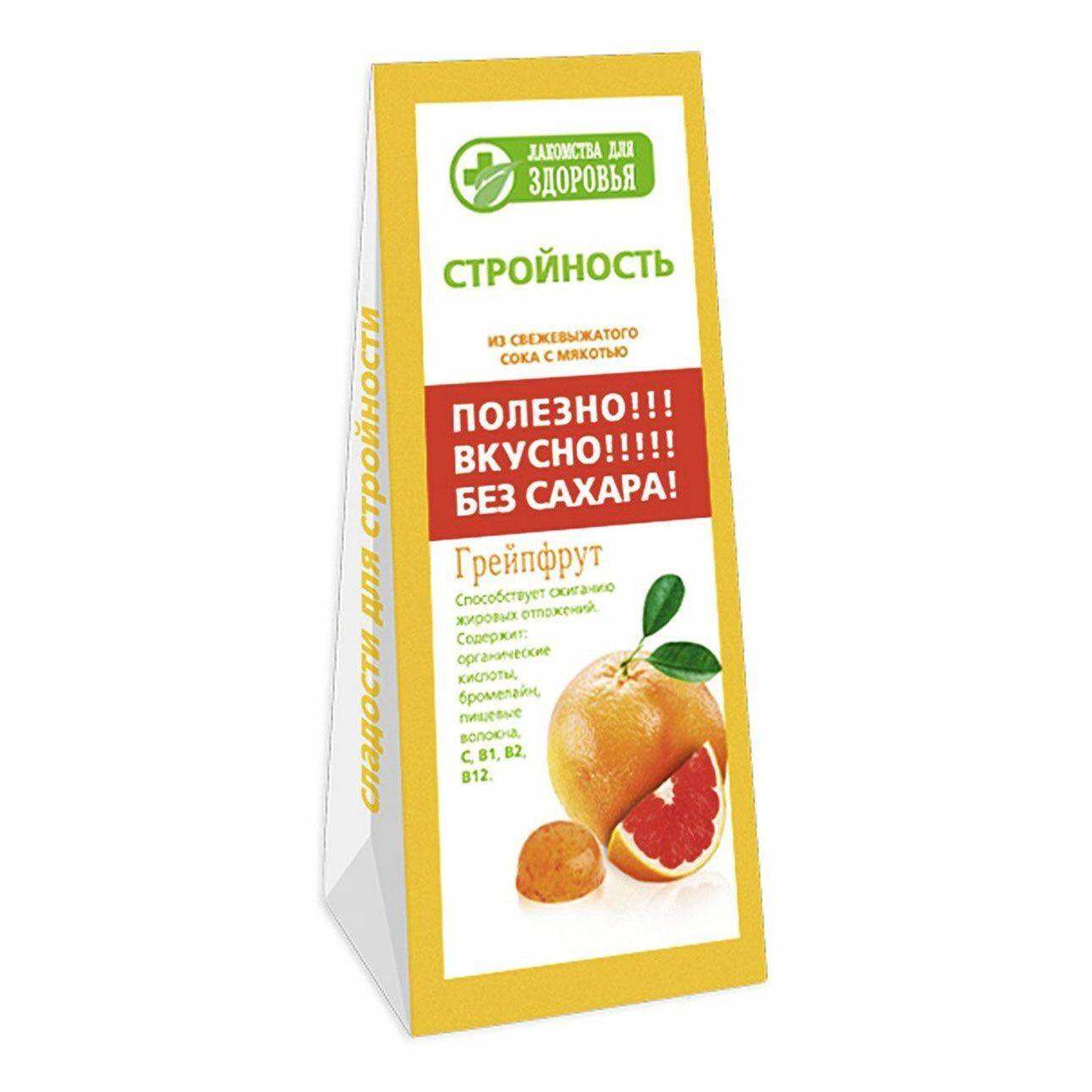 | Состав | фруктоза, патока, грейпфрут, желирующий агент (агар), регулятор кислотности (лимонная кислота), консервант (сорбиновая кислота). без сахара. |