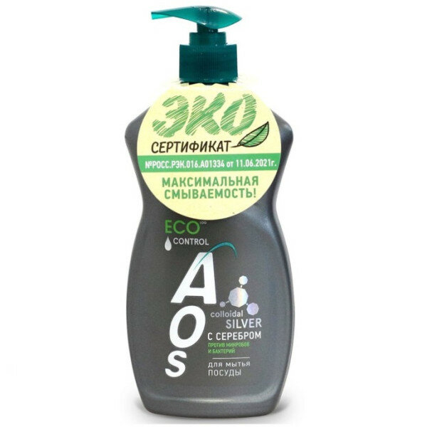 Гель для мытья посуды AOS с серебром 450г