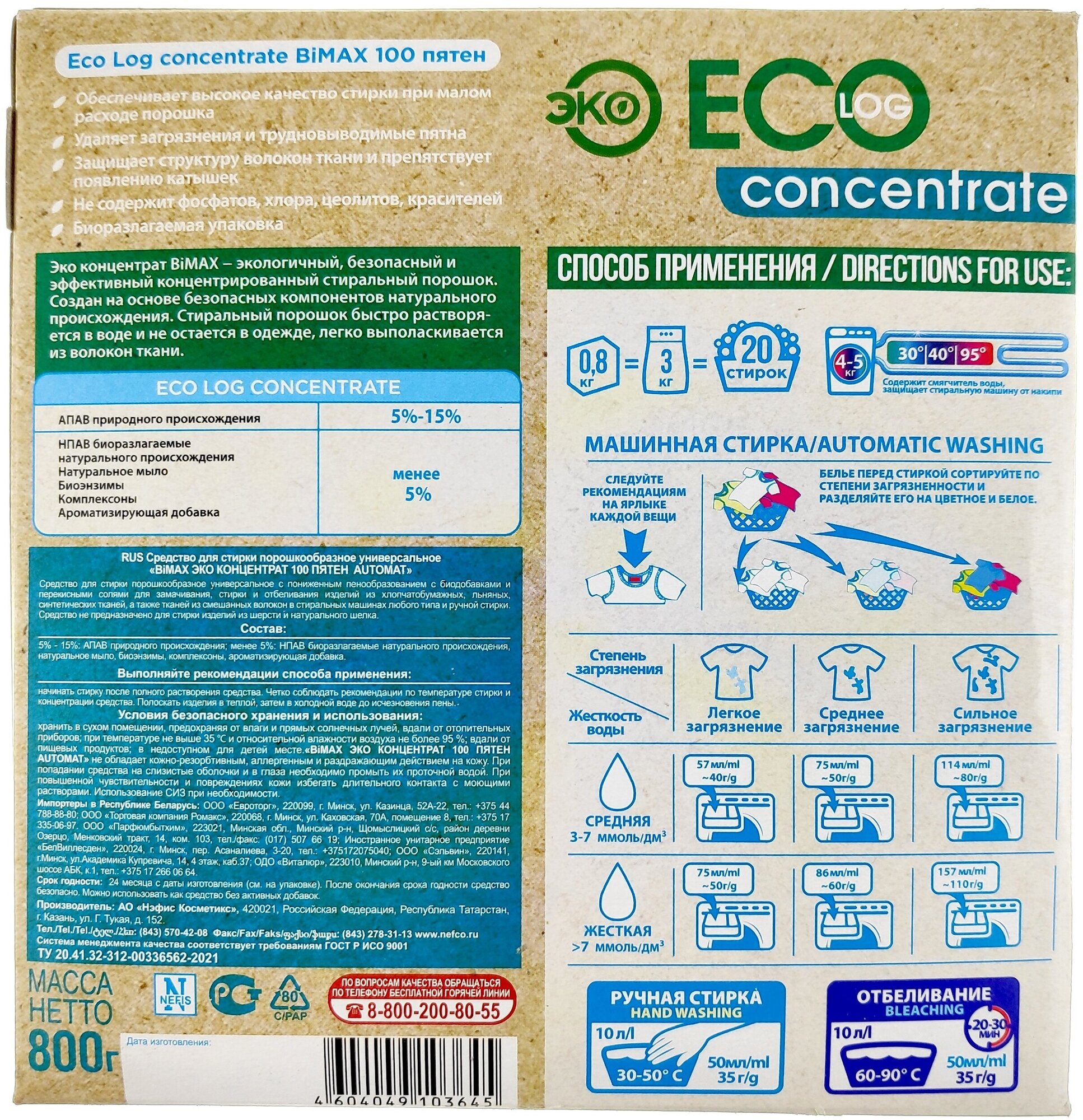 Эко концентрат экологичный, безопасный и эффективный концентрированный стиральный порошок. Создан на основе безопасных компонентов натурального происхождения. Стиральный порошок быстро растворя- ется в воде и не остается в одежде, легко выполаскивается из волокон ткани.