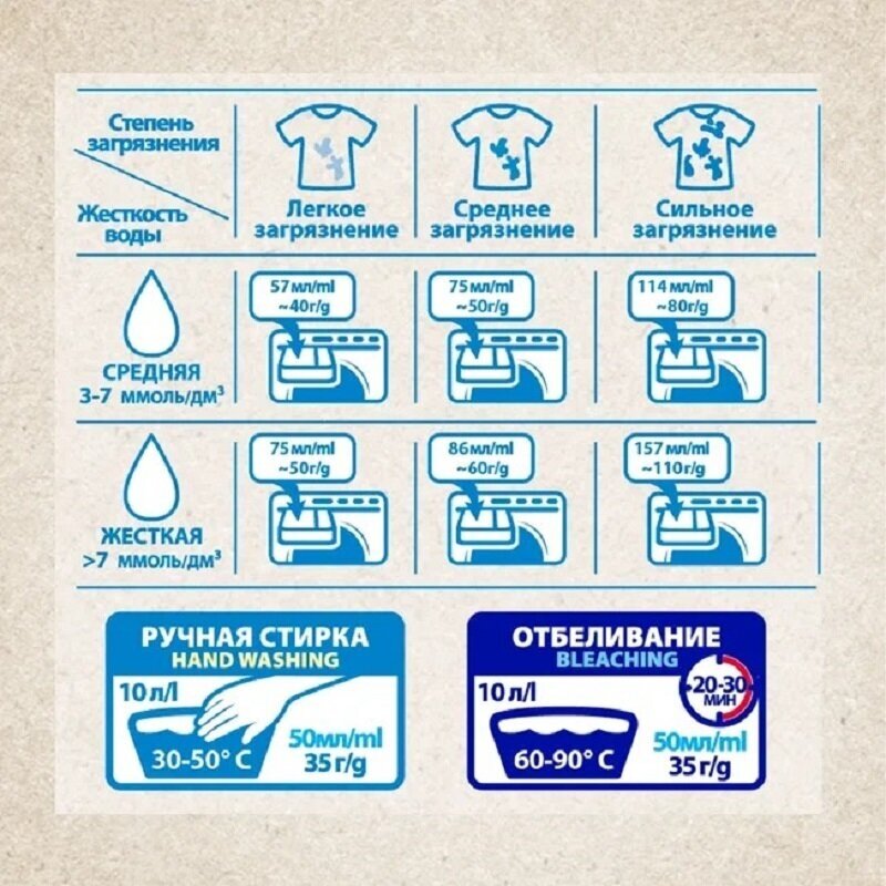 | Назначение средства | для белых и светлых тканей; для цветных тканей |