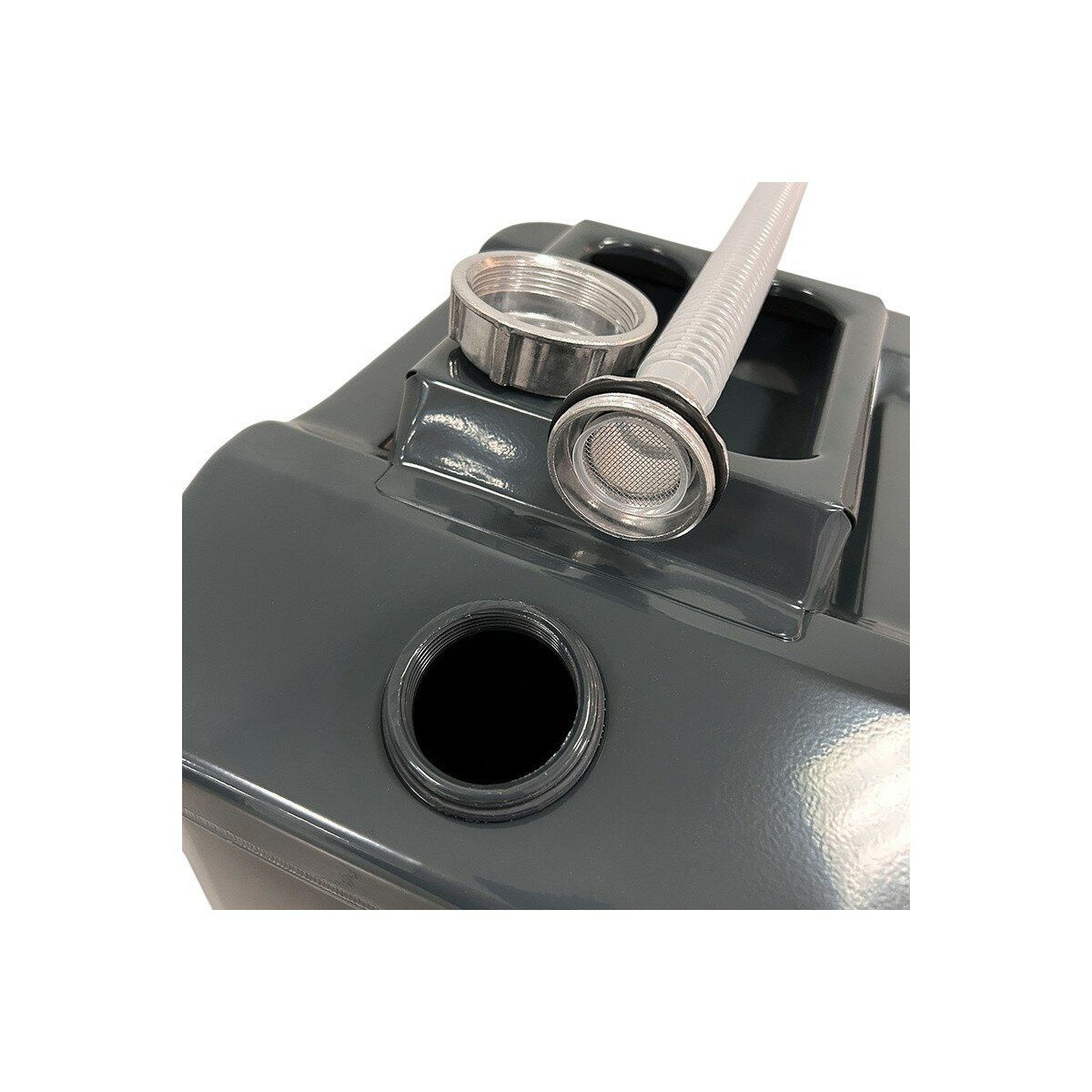 В комплект входит гофрированная заливная трубка, которая убирается вовнутрь канистры и надежная резьбовая крышка, благодаря которой при хранении и транспортировке исключено протекание и испарение. Так же в конструкции предусмотрен клапан избыточного давления.