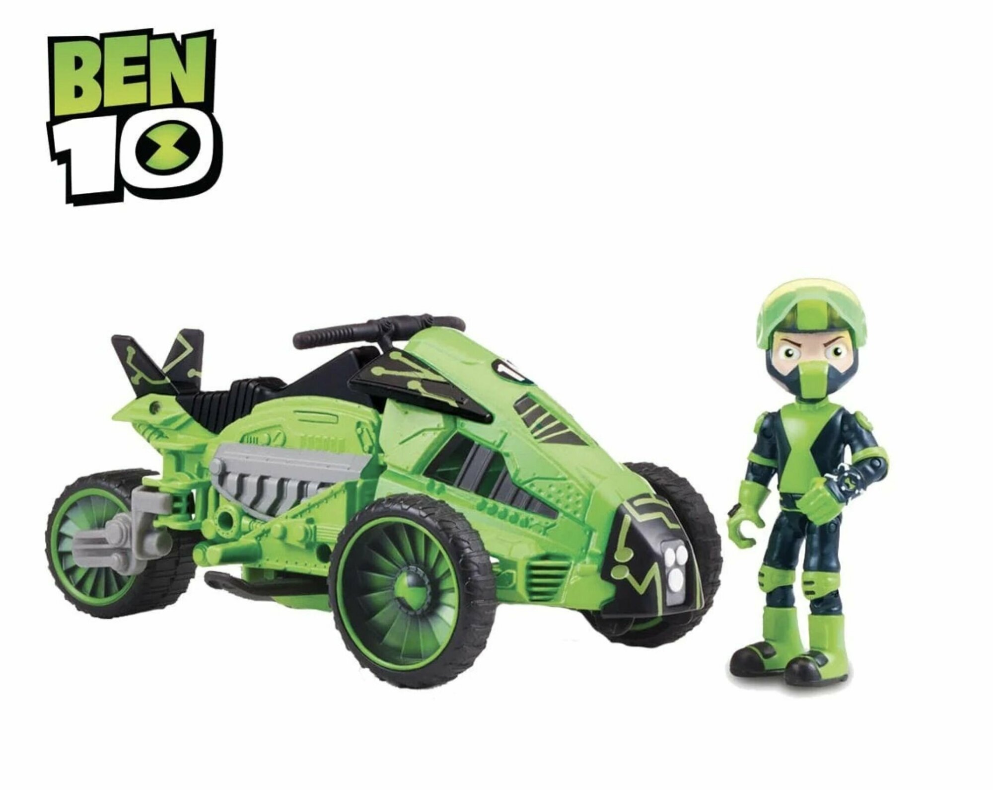 В наборе: фигурка Бена, багги — транспортное средство. упаковка размерами 26,1 х 44,2 х 34,2 см. Батарейки не требуются. Для мальчиков от 4 лет. Посмотрите: у главного героя Бена из мультсериала «Ben 10» появилось настоящее транспортное средство — багги. Бен сможет передвигаться ещё быстрее. Берегитесь враги нашей планеты! Эксклюзивная фигурка Бена в специальной амуниции и в шлеме полностью повторяет персонажа из мультсериала. Фигурку можно посадить в багги, а в руках зафиксировать руль. Транспортное средство имеет необычный вид. Поклонники мультсериала будут в восторге! За счёт реалистичных элементов багги, двигающихся рук и ног фигурки, игра станет ещё интереснее. Ребёнок сможет воспроизвести понравившиеся сюжеты, вовлекая в игру других героев, а попутно будет развивать фантазию и мелкую моторику рук.