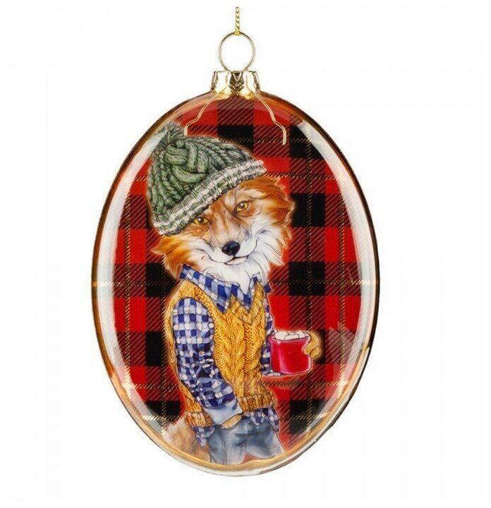 Елочная игрушка ErichKrause Лис-хипстер медальон стекло 12 см