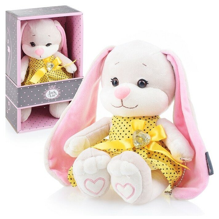 Мягкая игрушка Jack&Lin Зайка в желтом платьице в черный горошек 20 см (размер: маленькая)