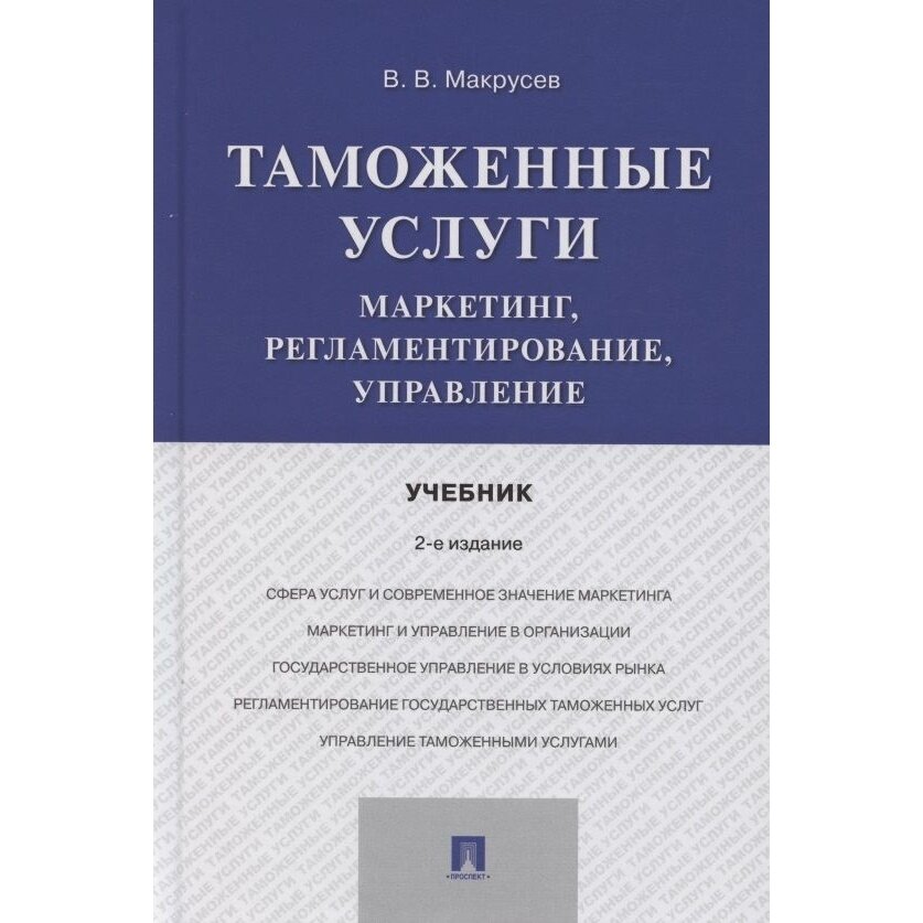 Таможенные услуги. Маркетинг регламентирование управление. Учебник (Макрусев Виктор Владимирович); Проспект, 2021