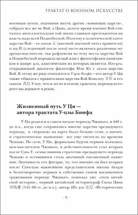 Трактат о военном искусстве У-цзы по праву вошел в наследие китайской философской мысли классического периода эпохи Восточная Чжоу (VIII–III вв. до н.э.), когда были созданы все великие труды главных философских направлений китайской мысли (конфуцианство, даосизм, легизм).