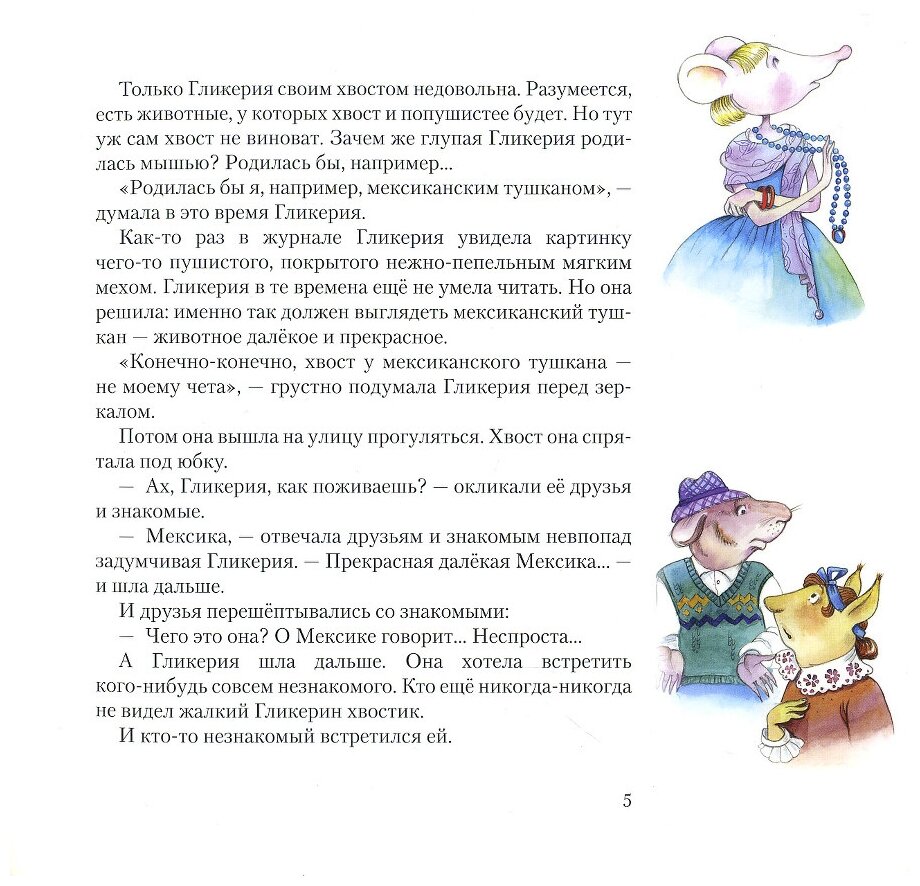 Все вокруг знают, как жить правильно. Мышь Гликерия знает, как жить с удовольствием. Она сочиняет белые, как молоко, стихи и собирает настоящие сокровища - кленовые самолётики, старые монетки, обёртки от шоколада и осколки от ёлочных шариков. Каждый раз, когда Гликерия пытается сделать что-то "как принято", начинаются приключения, и всё у неё в итоге получается по-своему.