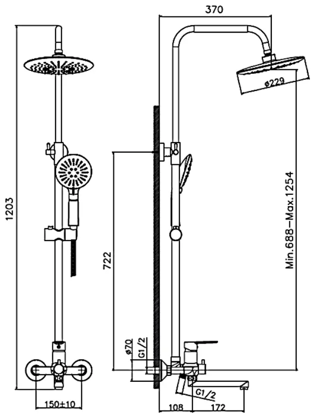 | ВКоробке | Душевая стойка - 1 шт. Верхний душ - 1 шт. Лейка - 1 шт. Шланг - 1 шт. Смеситель - 1 шт. Эксцентрик - 2 шт. Инструкция - 1 шт. |