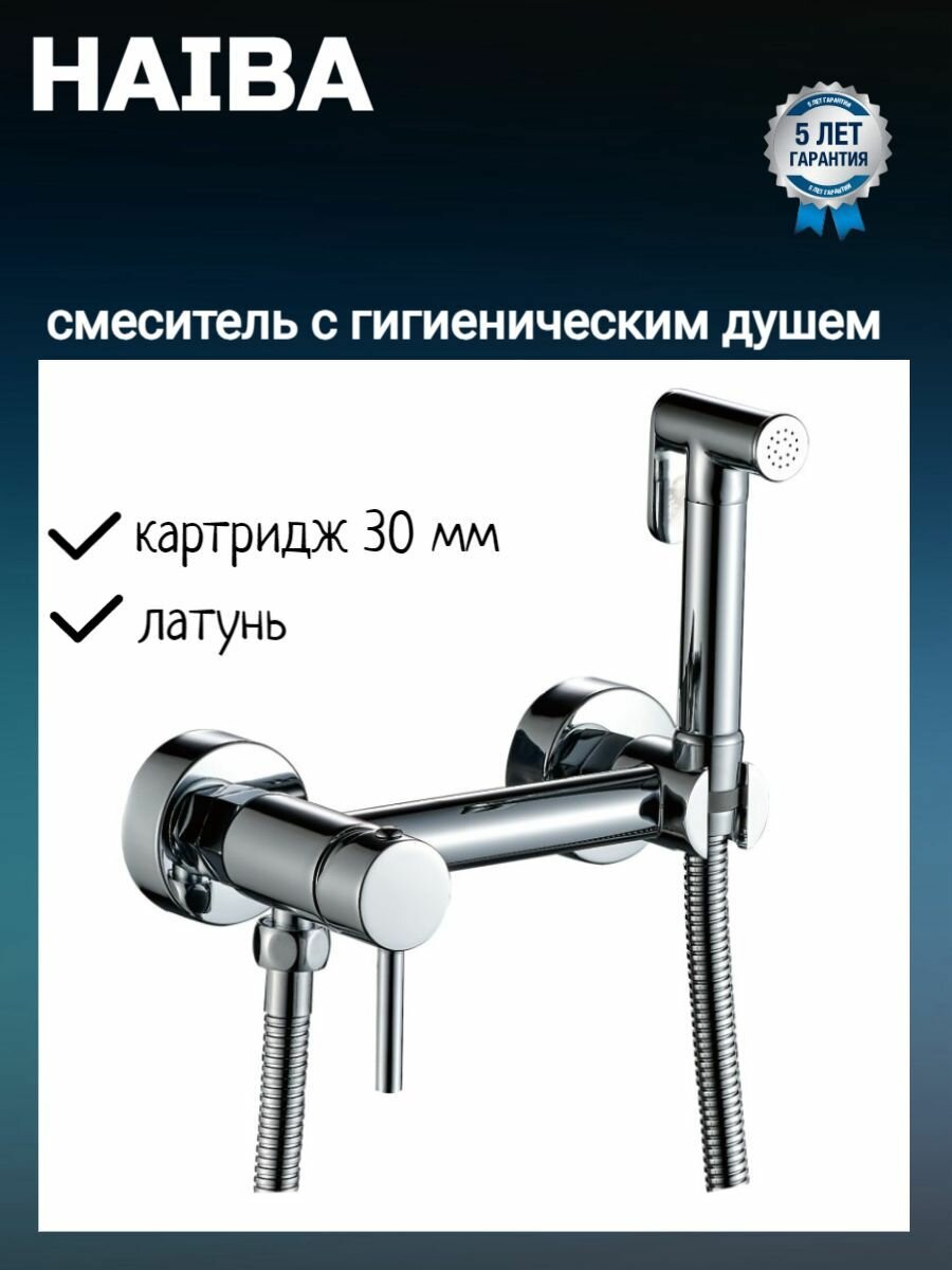 Гигиенический душ Haiba HB5510, хром. В комплект входят: держатель для гигиенической лейки, 2 эксцентрика, лейка, шланг. Керамический картридж 30 мм. Металлическая рукоятка. Душевой шланг 1 метр. Душевая лейка на 1 режим.