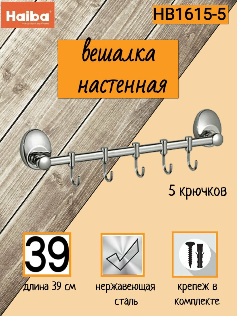 Планка Haiba HB1615-5, хром. Планка с крючками, крепление. Все аксессуары бренда Haiba отличаются стильным и лаконичным внешним видом. Идеально подойдет под любой дизайн ванной комнаты.