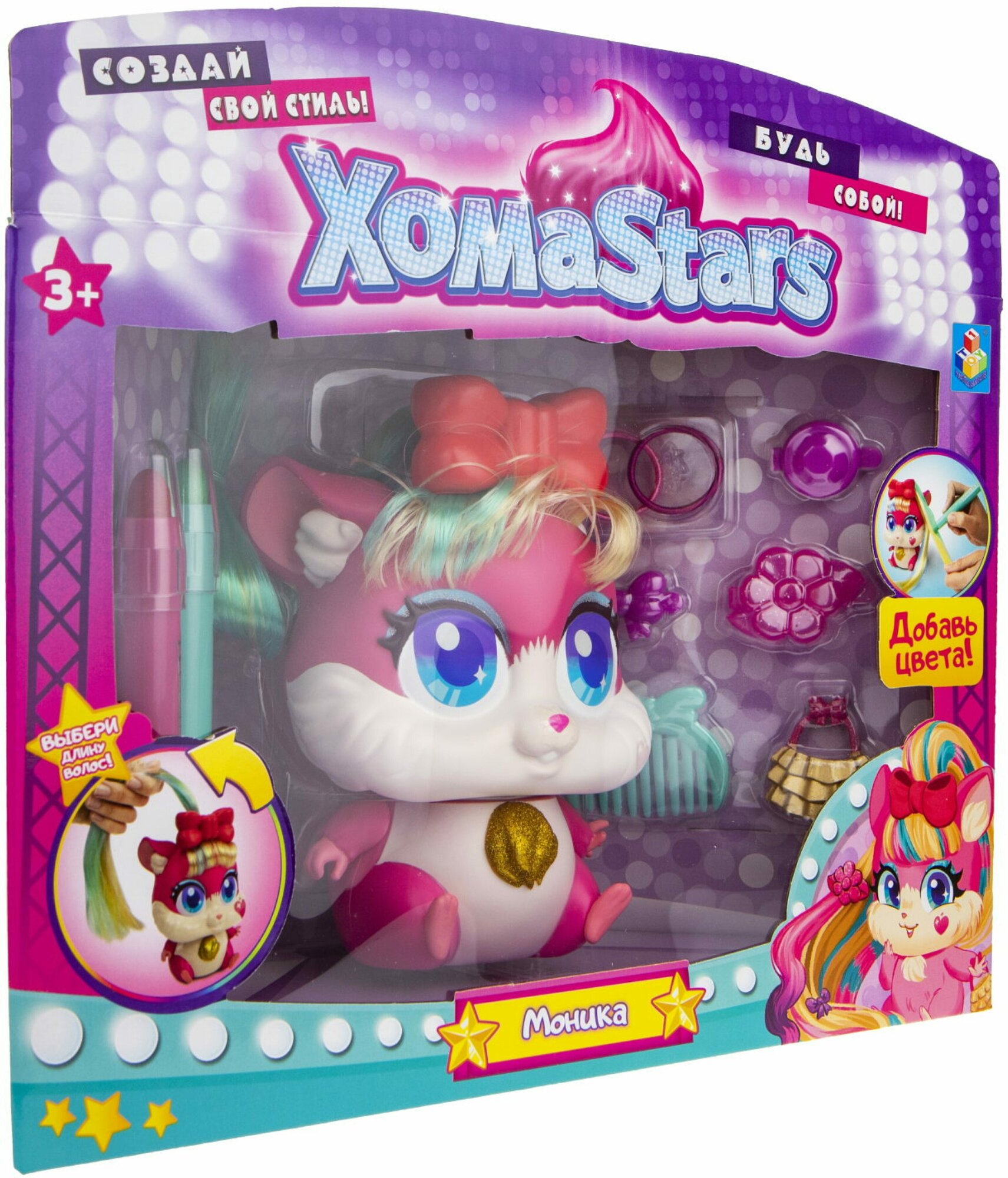 1TOY Игровой набор ХомаStars хомячок Моника с "растущими" волосами ХомаStars хомячок Моника с "растущими" волосами (разноцветный)