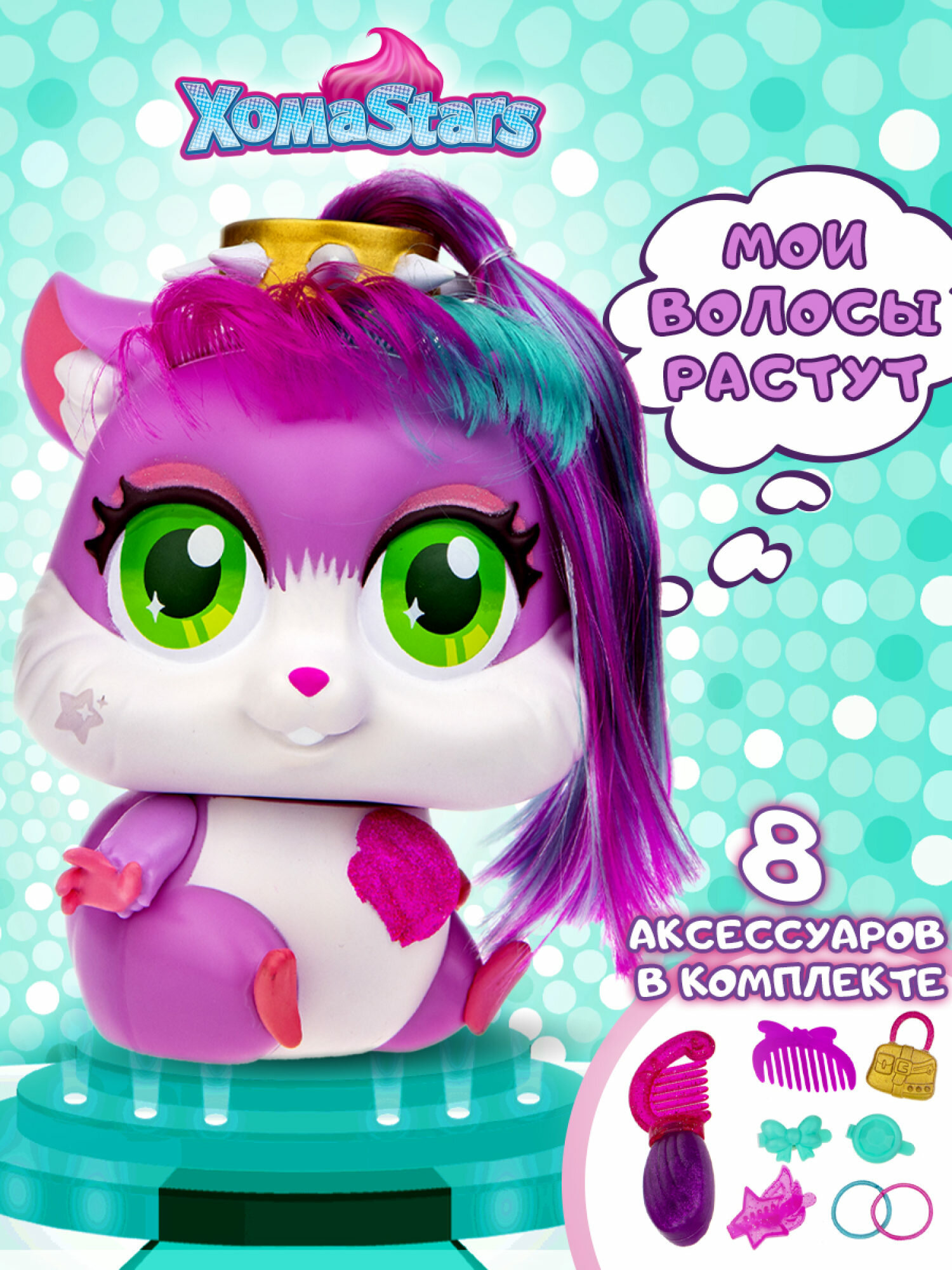 | Состав | Хомяк с волосами - 1шт, гребешок с блестящим гелем для "волос" - 1шт, расческа - 1шт, заколка для волос - 3шт, сумочка - 1шт, резинка для "волос" - 2шт. |
