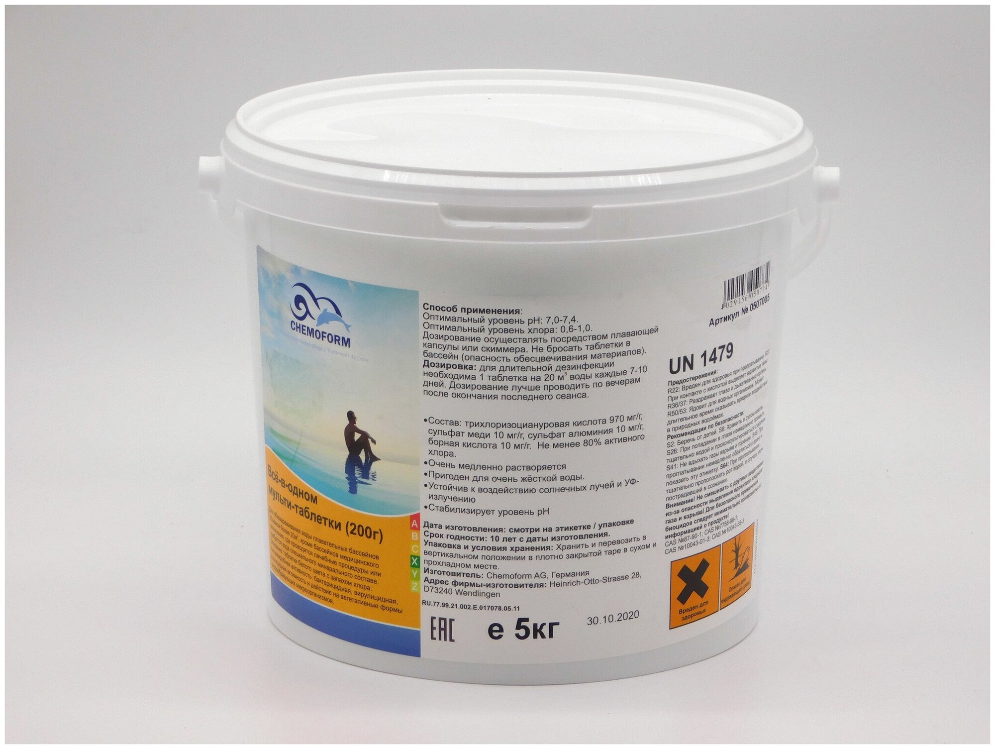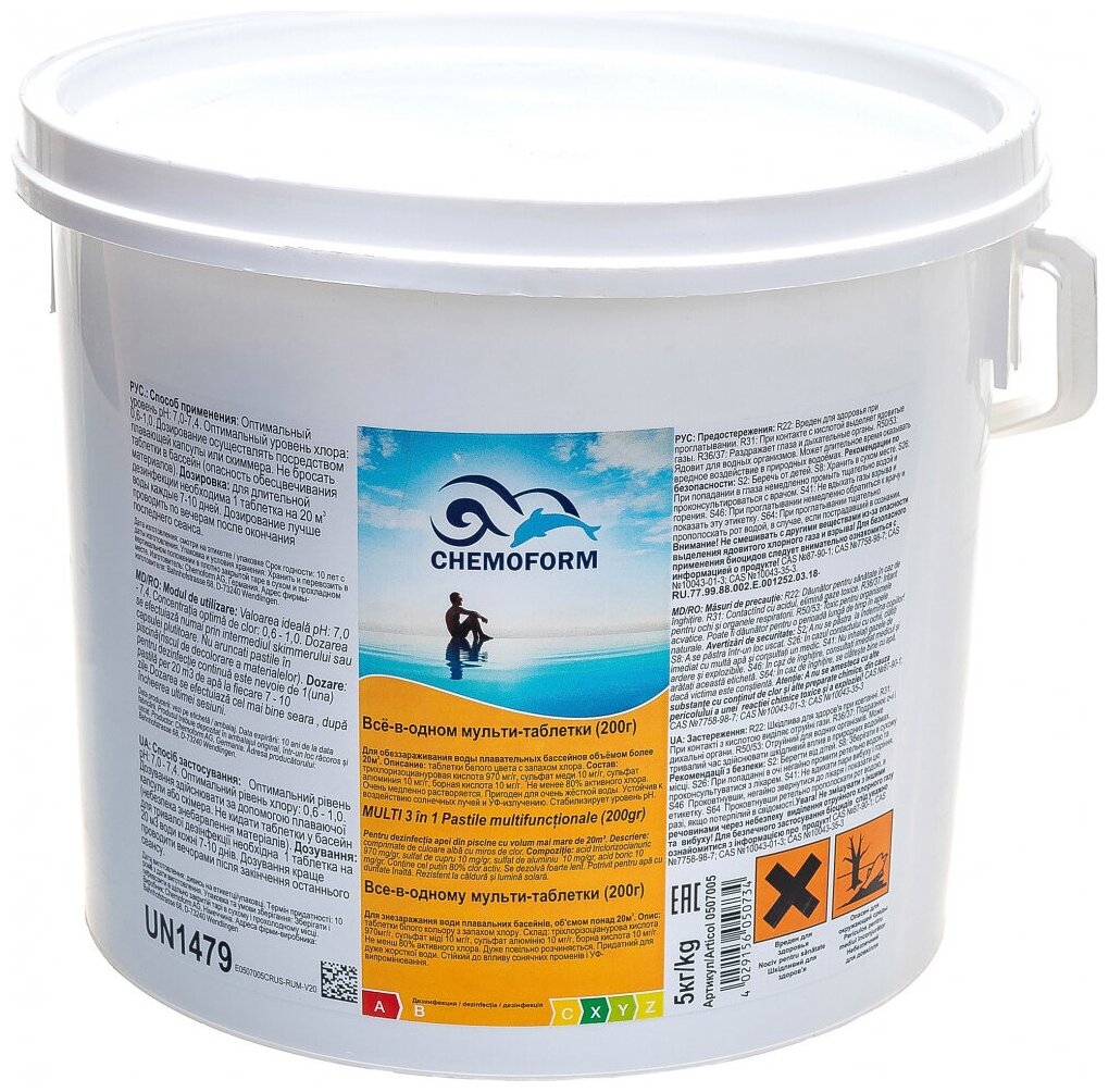 Дезинфицирующее средство для бассейна Chemoform Мульти-таблетки по 200 г 5 кг 507005