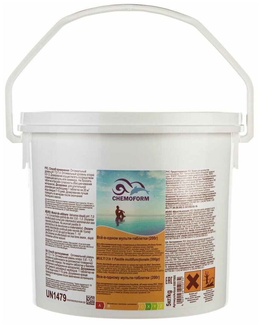 Сервис сравнения цен СкидкаГИД предлагает сравнить цены на товар «Дезинфицирующее средство для бассейна Chemoform Мульти-таблетки по 200 г 5 кг 507005»