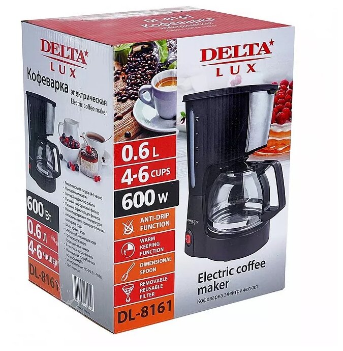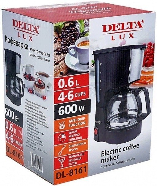 Сервис сравнения цен СкидкаГИД предлагает сравнить цены на товар «Кофеварка капельная Delta Lux DL-8161 600Вт 600мл черная БИТ (74023)»