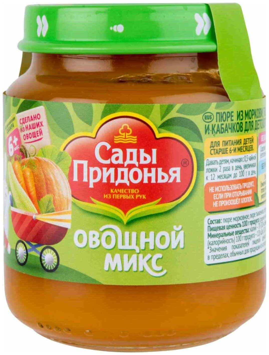 Пюре "Сады Придонья" сочетает пользу традиционных овощей - моркови, тыквы и кабачка.