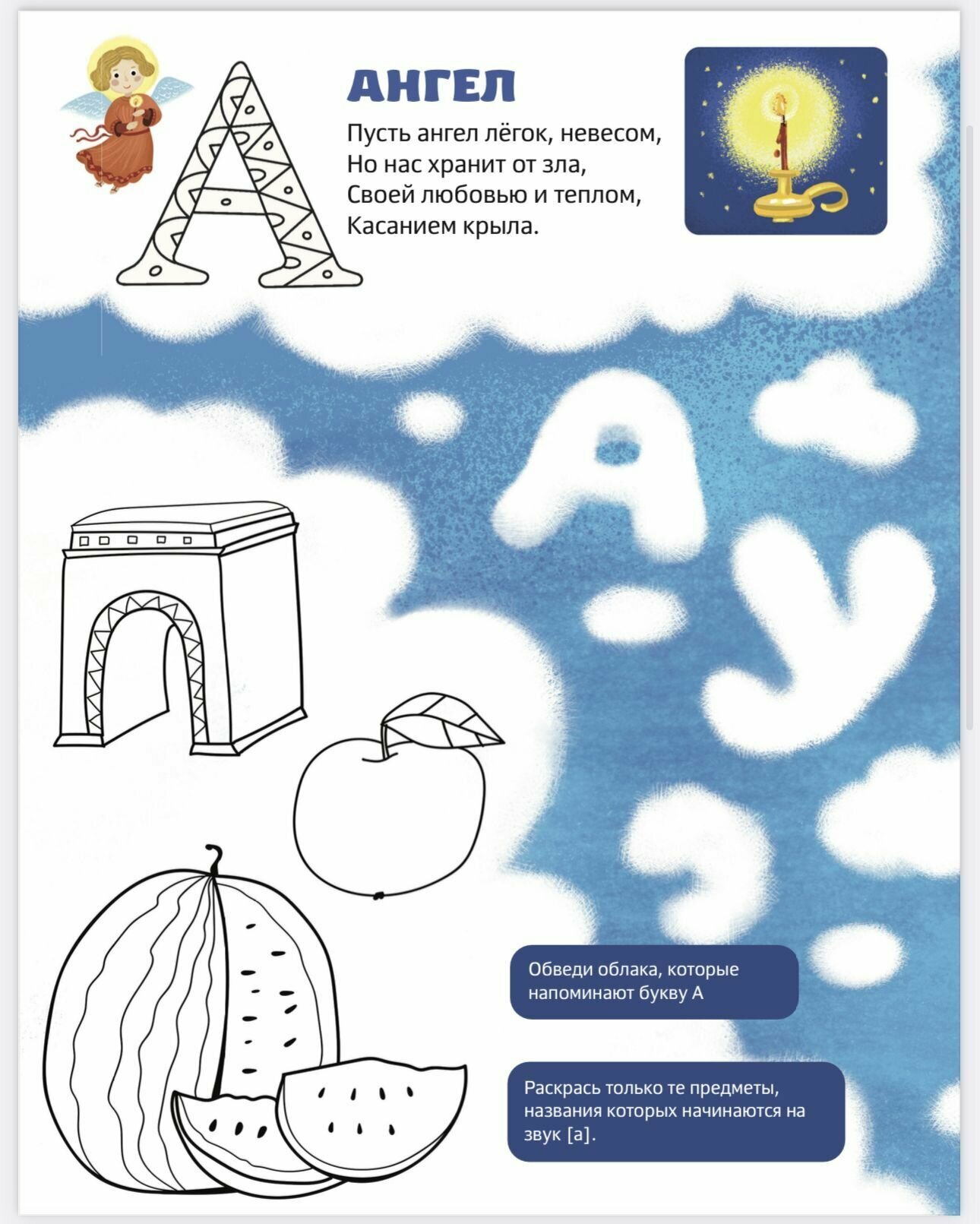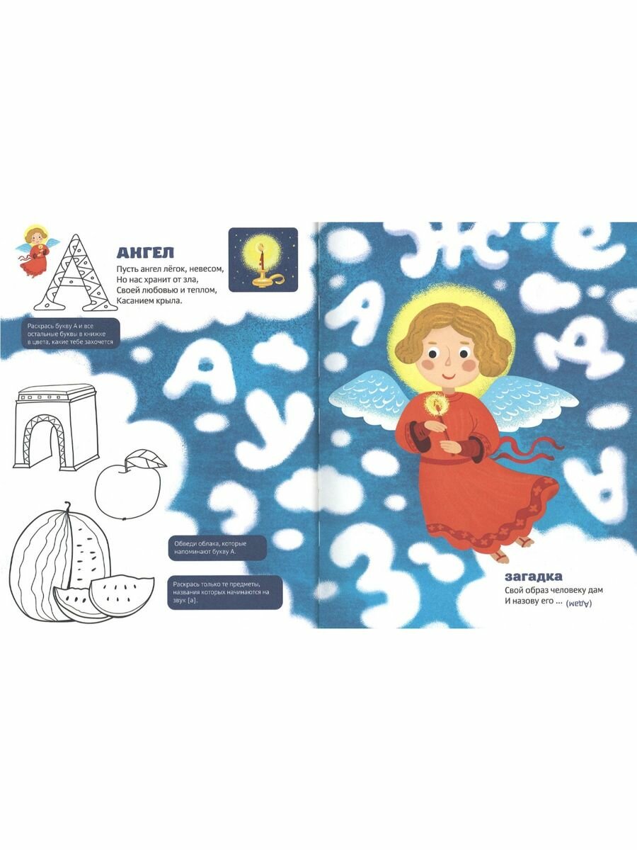 С этой азбуки можно начать разговор с ребенком о вере, о Боге, ангелах... и все это играя - читая стихи, разгадывая загадки, проходя сложные лабиринты и раскрашивая картинки. Книга рассчитана на маленьких детей, которые ходят в Воскресную школу или просто задают вам первые вопросы о Рождестве, Пасхе, о дружбе и предательстве, о верности учеников Учителю. Одновременно ребенок, играя и отвечая на вопросы, выучит все буквы! Книга прекрасно иллюстрирована и будет настоящим подарком вашему ребенку!