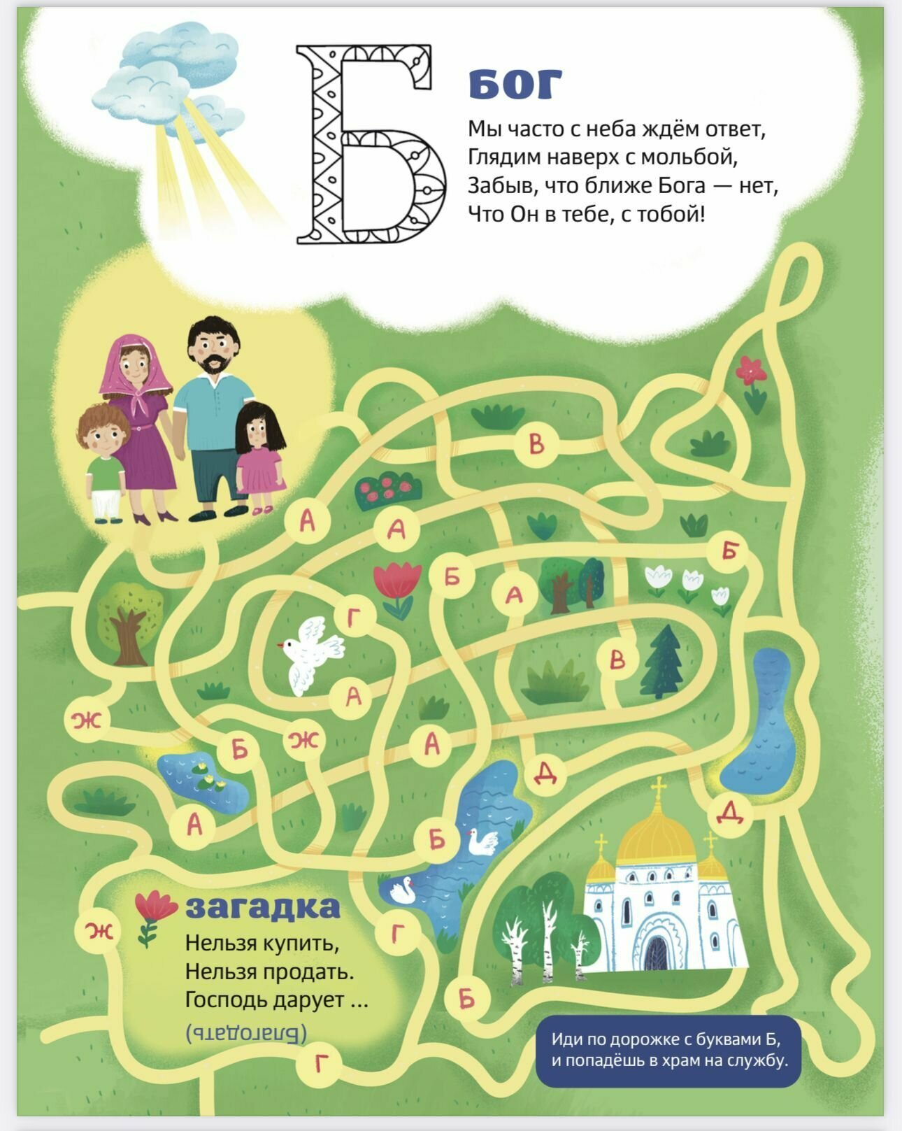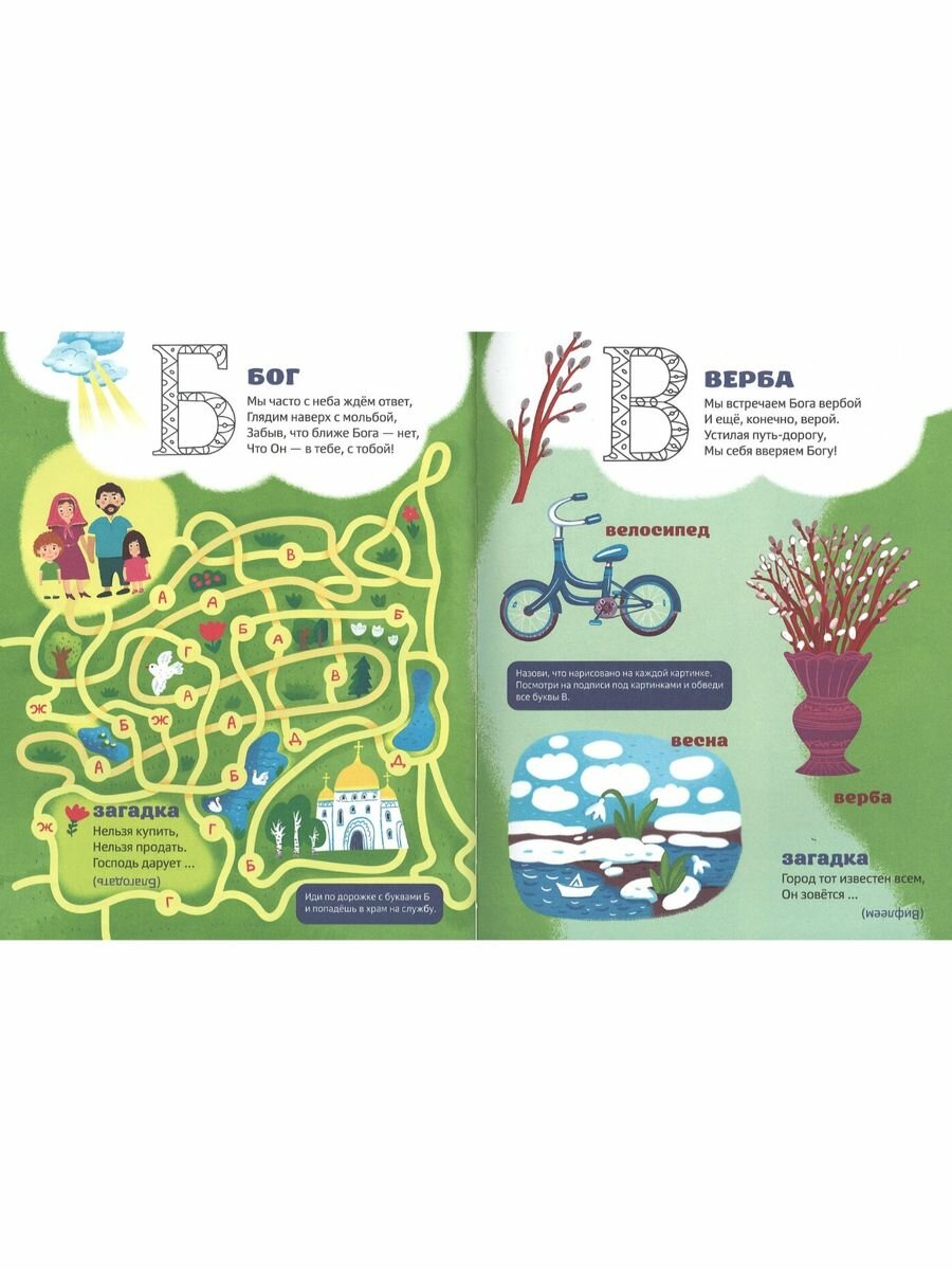 В этой книге знакомство детей с буквами происходит с помощью стихов на православную тему, загадок, раскрасок и лабиринтов. Ведь запомнить буквы гораздо легче, если чтение превращается в увлекательное занятие!
