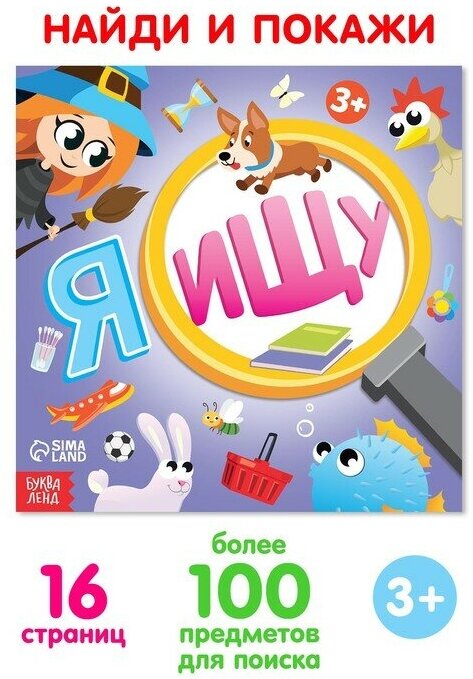 Книга обучающая "Я ищу", 16 стр. Книга из серии «Я ищу» направлена на развитие внимания и усидчивости. Забавные яркие картинки превратят выполнение заданий в весёлую игру.Серия «Я ищу» представлена книгами с различными тематиками:* «Животные»,* «Алфавит»,* «Девочки»,* «Космос»,* «Транспорт»,* «Динозавры»,* «Ферма»,* «Числа»,* «Я ищу».Рекомендовано для детей от 3 лет.