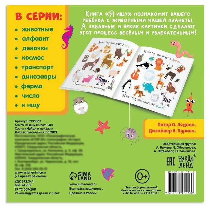 Книга: Я ищу животных (Лядова Алена Алексеевна); Буква-ленд, 2021