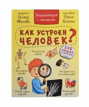 Энциклопедия с окошками "КАК УСТРОЕН ЧЕЛОВЕК?" 110 окошек (Иванова Оксана); БимБиМон, 2021