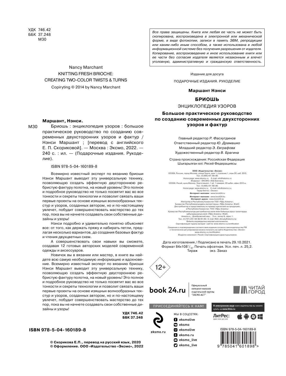 Бриошь. Энциклопедия узоров. Большое практическое руководство по созданию современных двухсторонних узоров и фактур (новое оформление) (Маршант Нэнси); ООО "Издательство "Эксмо", 2021